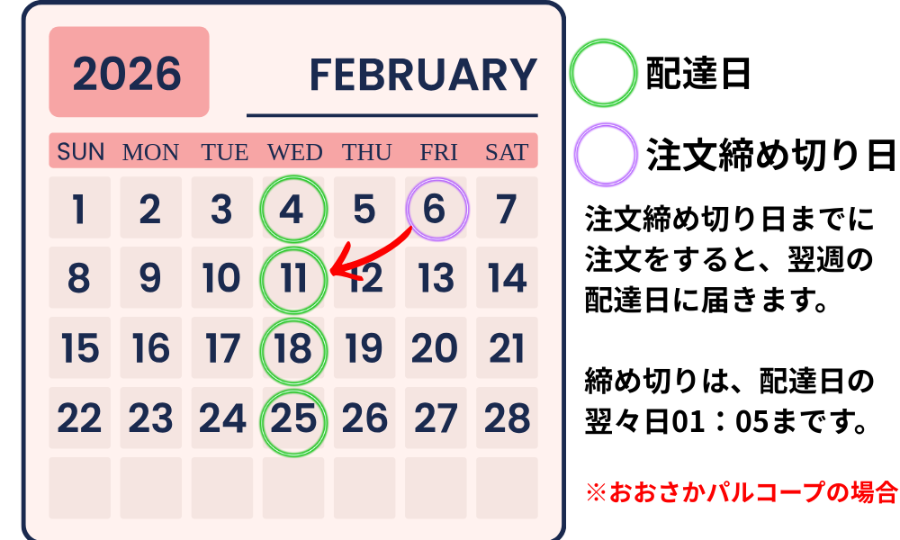 原則として地域ごとに決まった曜日・時間帯に配送するルート配送を採用しているため、曜日や時間を自由に選ぶことができない仕組みになっています。