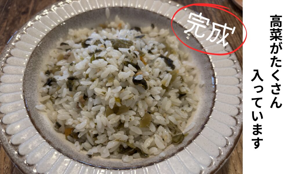 高菜のピリ辛感があり、高菜好きはどハマりする一品。