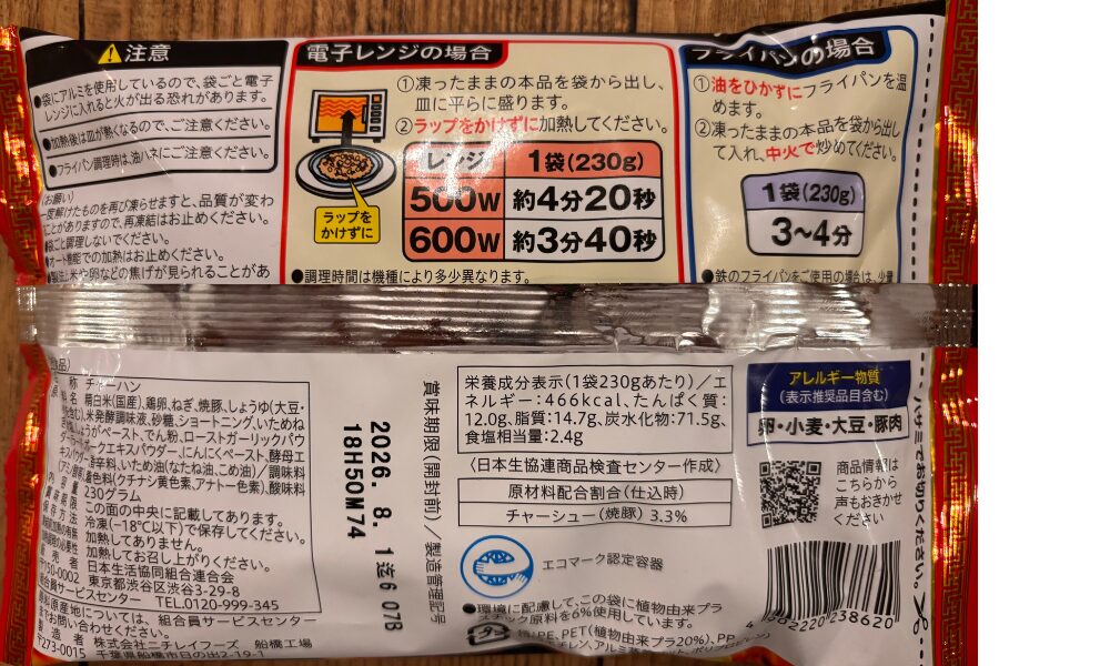 冷凍チャーハンを購入するときは、コープを利用しています。